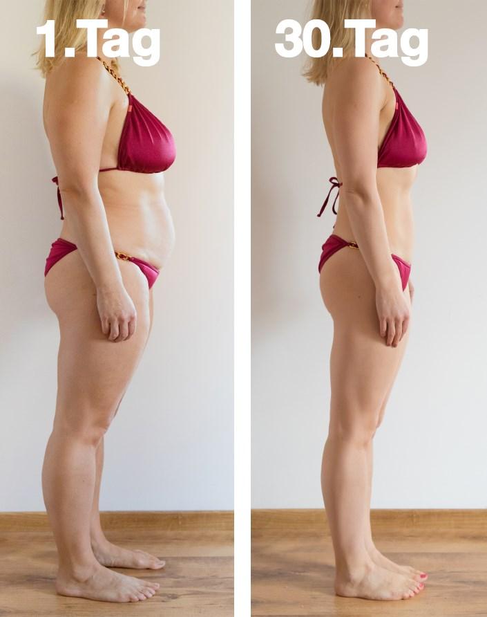 Selbst an meinen Problemzonen, den Oberschenkeln, Bauch und Po formte sich allmählich eine neue Figur.